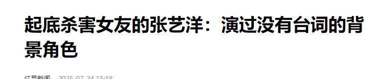 红星新闻,2025-07-24,起底杀害女友的张艺洋,演过没有台词的背景角色